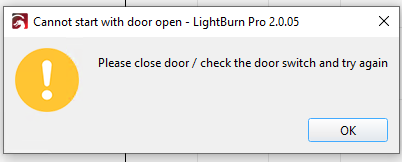 If your door is not closed and your IO settings are properly configured in an actively connected computer and you try to run a project, you will get this error message: