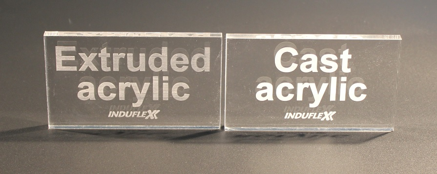 This type of acrylic is not commonly found locally but it is used in aquariums so a pet or aquatics store may be worth a try. It is produced by pouring the resin in a cast and subjecting it to heat and pressure. Cast is usually masked with thin craft paper but not always. Cast is great for etching and produces remarkable contrast.