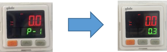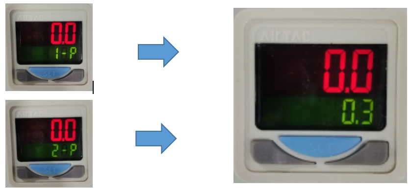 Set Pressure Detection Value (Short-press SET, then use ∧∨ keys to adjust) | P-1: 0.3 | 1-P: 0.3 | P_1: 0.3 | F1,Set |