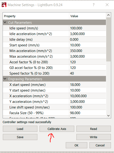 Select the 'Z' axis from the drop down. Lightburn will calculate the New Step Length based off your inputs. If you want to accept, press the "Write" button.