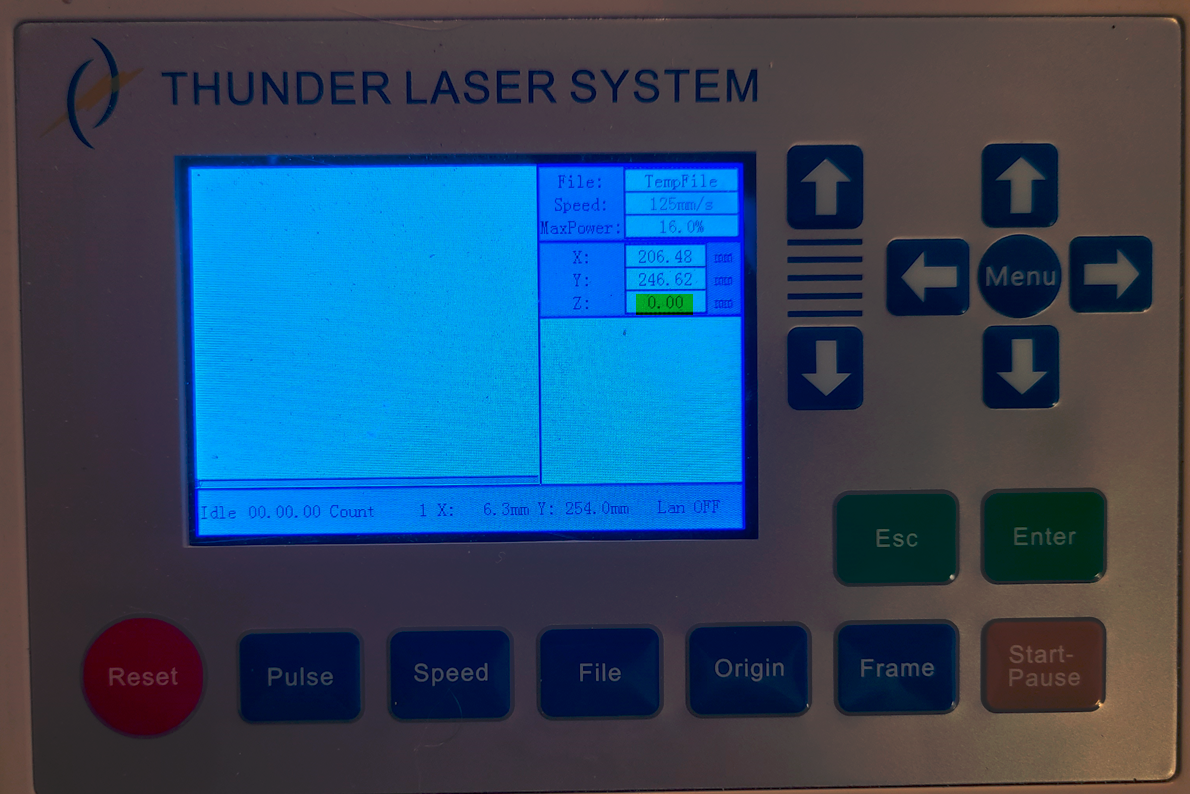 Step 1: Use Axes Reset in Menu to raise honeycomb to 0 position which will Zero the readout on the Screen