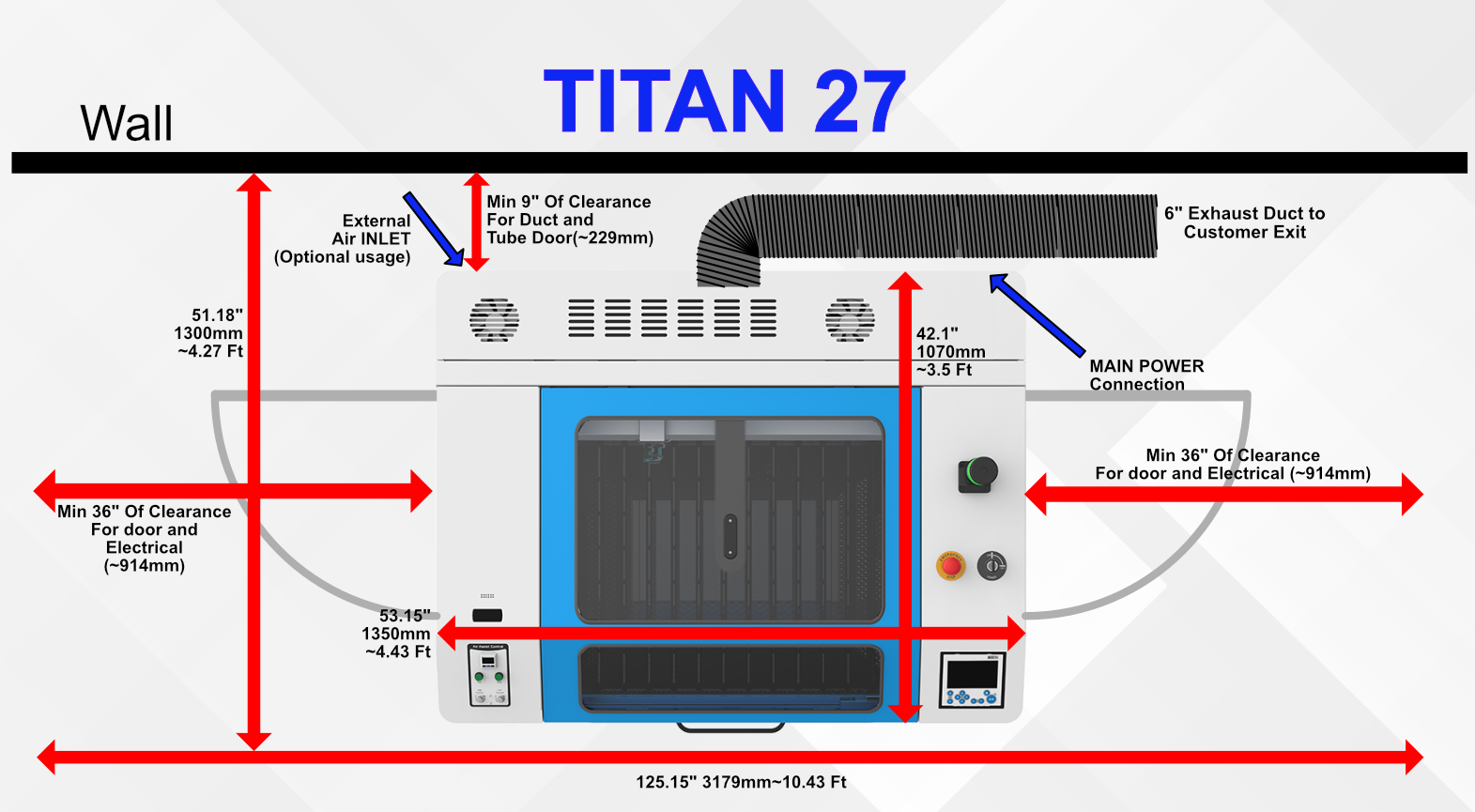 Example Layouts for Work Space Considerations For Titan and Titan Pro Laser Machines