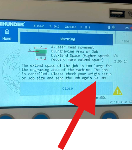 Alarm message of LCD panel—No enough extend space LCD panel shows the following information: This problem only appears on engraving mode, it’s caused by the buffer distance is out of bound. For example, if you want to engrave a picture of 200×200mm, ...