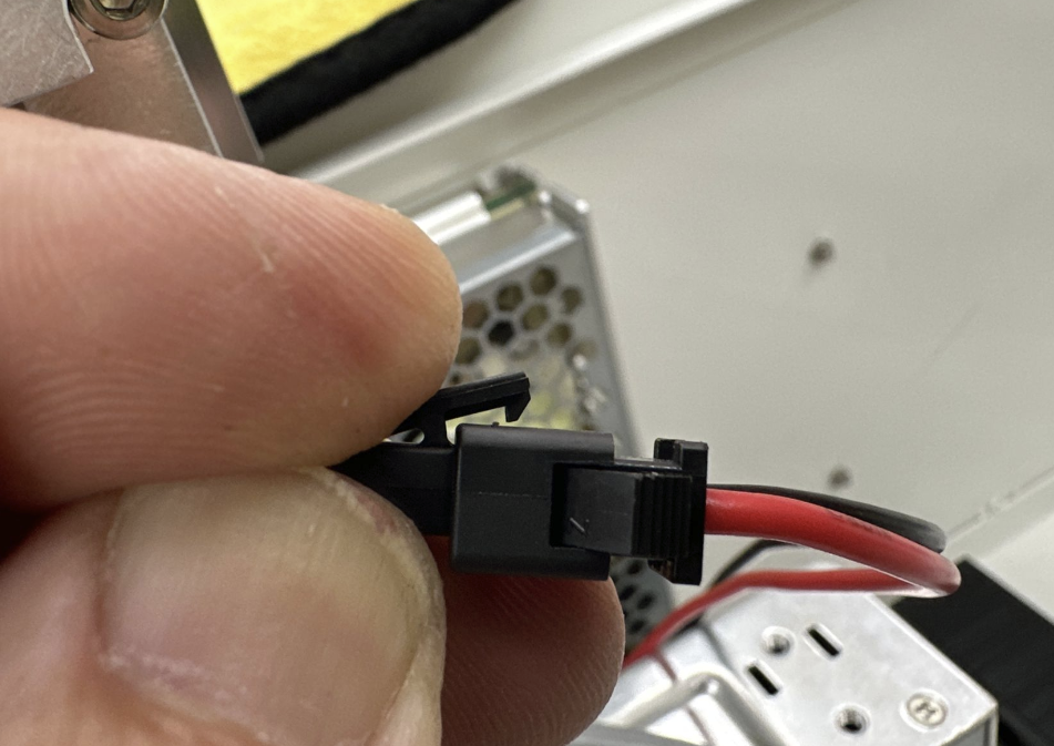 2. Re-install the 48V red and black wires, fan wire connection and the Ethernet Cable