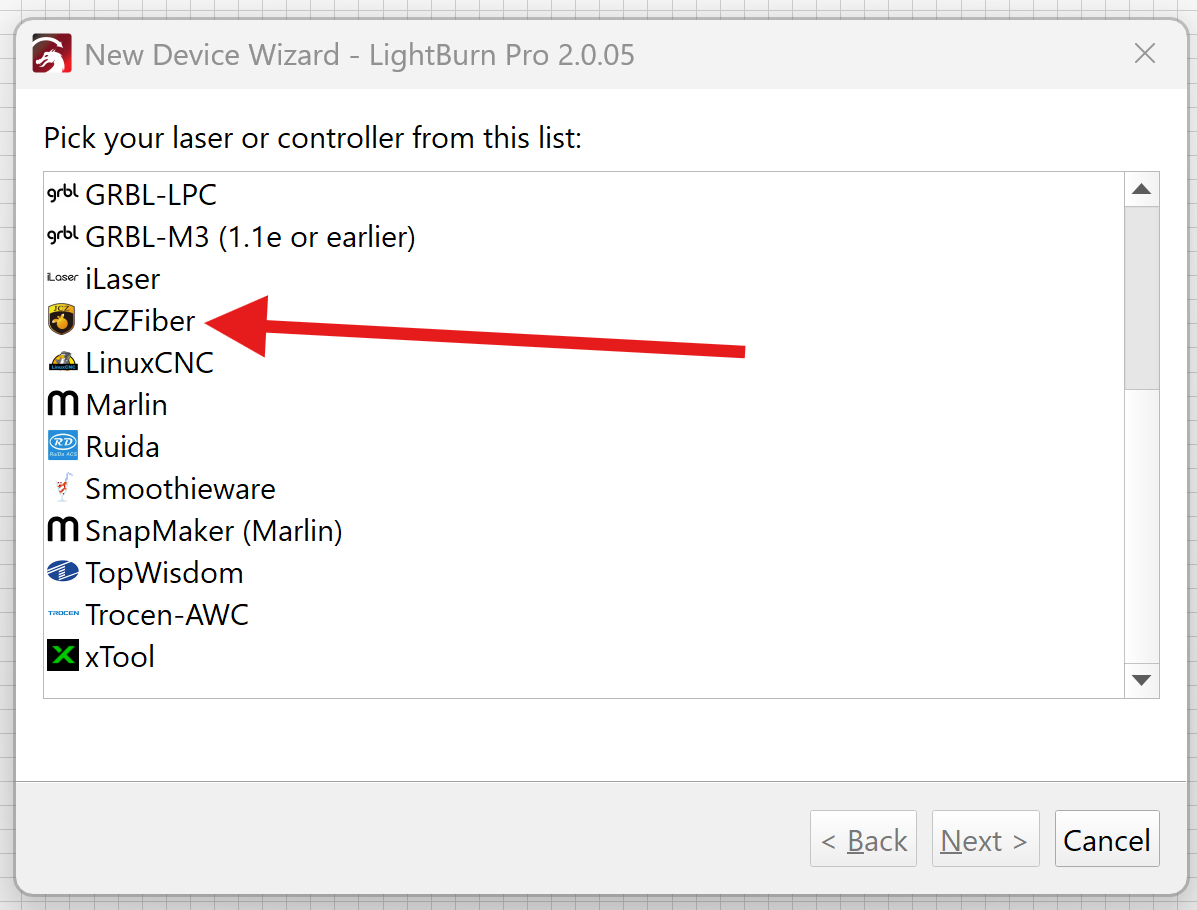 1. Ruida controllers not shown as an option the Device List