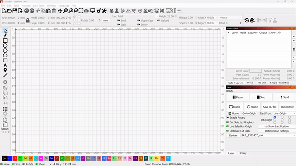 Preface: This article covers installing Lightburn for your Thunder Laser Aurora Galvo laser. The Aurora series contains models with different lens options and characteristics, do not rely on the pictures to match your file naming or workspace specs ...