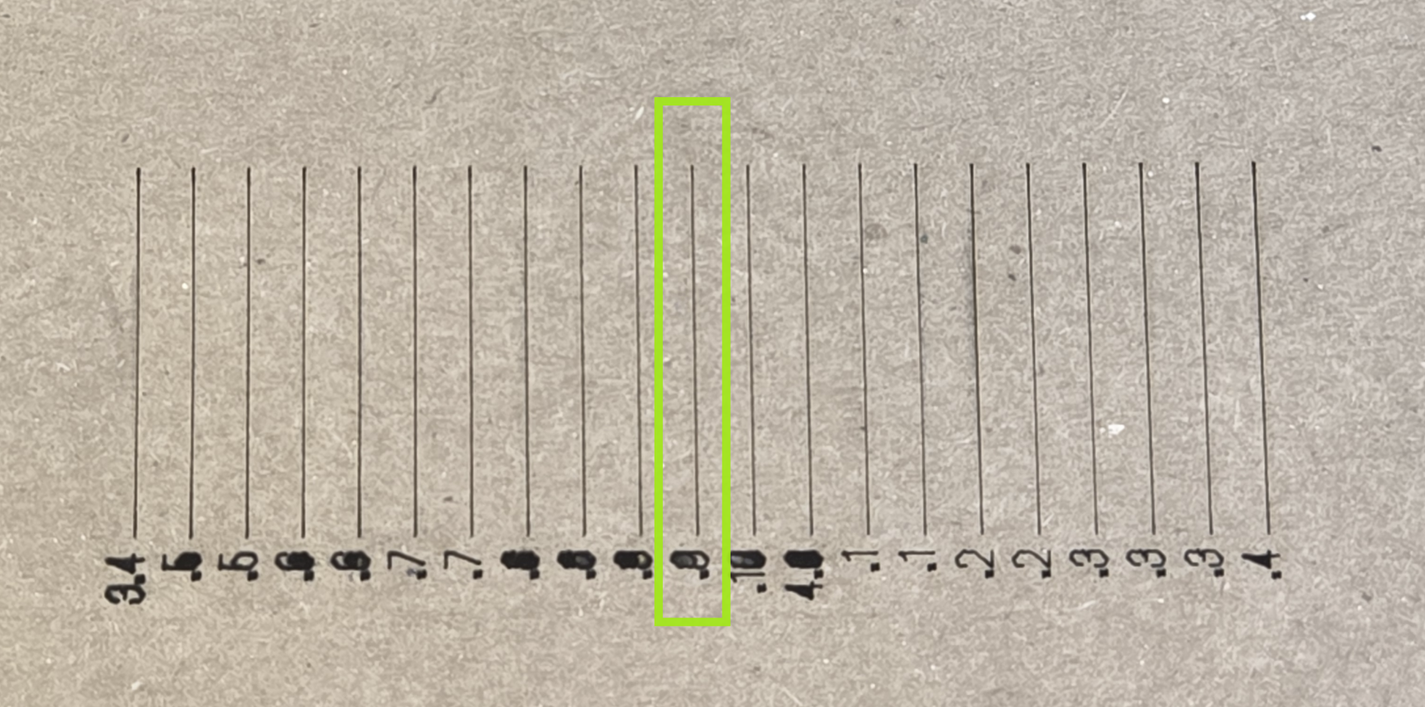 In this case, 3.9mm looks to be the most crisp and will be used as the Focal Distance for the 2.5" lens on this machine.