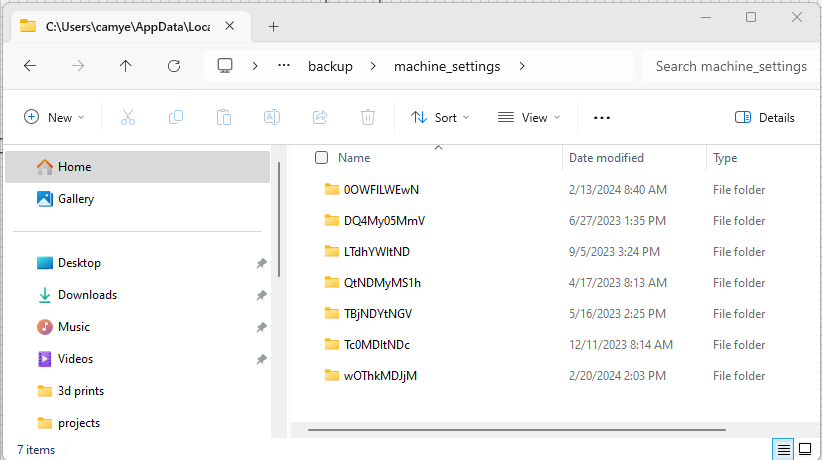 First we need to check for a backup of the machine settings file. Locating a backup will make the recovery process much easier and faster. It is worth taking the time to search your computer for the file.