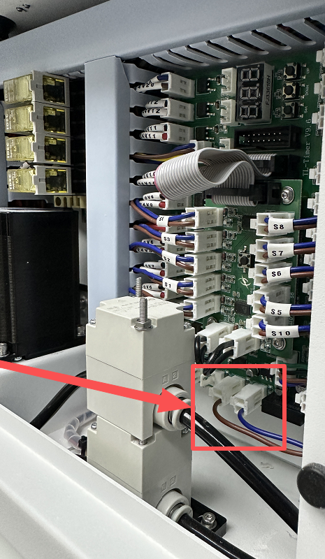 Located in the back of the machine, near the laser tube. It is the small green printed circuit board with a bunch of white connectors and wires running to it. It will have many red lights (Red is ok..not indicating an issue).