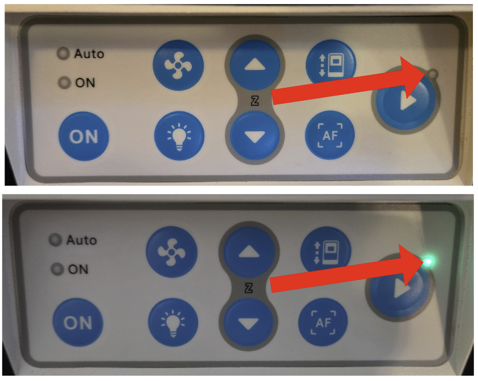 If the Interlock switch is in the ON position and the Estop button is clear, but the ON button has not been pressed, these are some of the symptoms you will observe: -Lights are adjustable -Red Light at the On button will be flashing -Solid Green Light on the button panel -Exhaust can be started and stopped at the button panel -Machine will not Auto Focus or move the Head up/down with buttons -Machine will communicate with your computer -Galvo head will frame and Laser Source will be powered Press the ON button. The red light at the ON button will go solid and all machine functions will be active |
