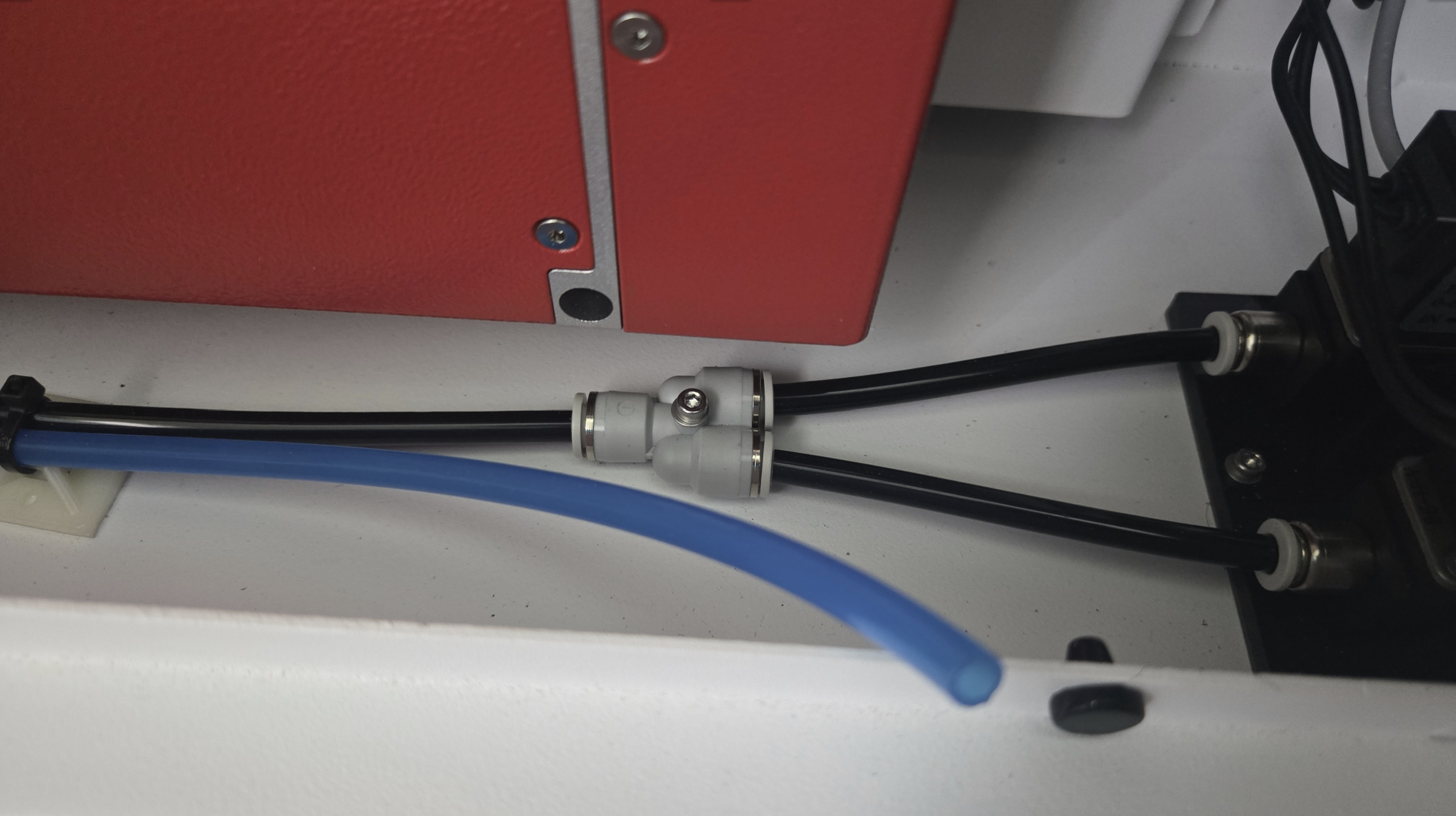 Where to Connect the Air toL You will plug your new external air feed line into where the original pump was plugged into. It will be on the back of the machine. For Nova Series, it is on the side by the chiller connections. For ODIN, Titan and Bolt PRO series it is underneath the tube box area on the back, below the power connections. |