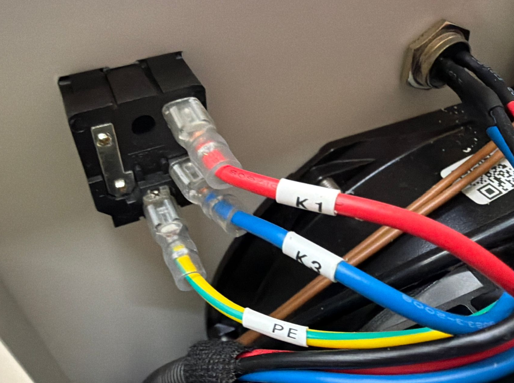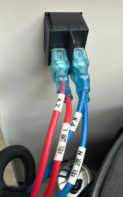 | Chiller Power Switch Harness Wires | Chiller Socket for Power Input on Back of Chiller |