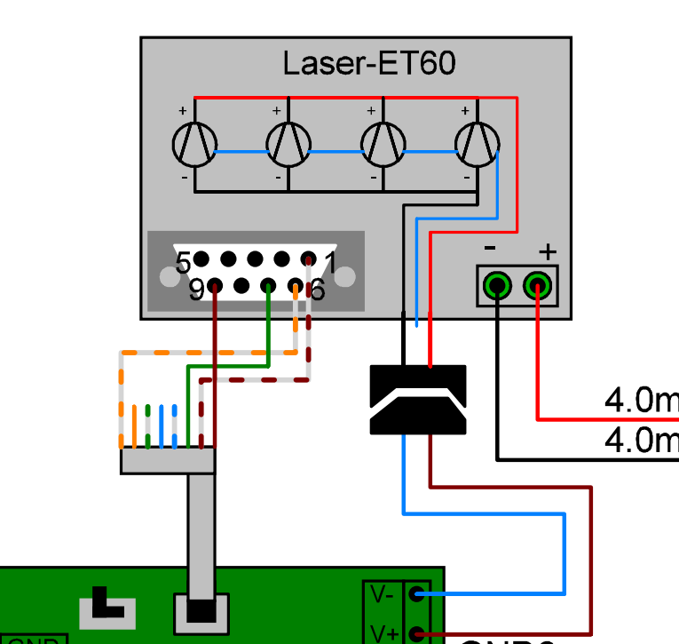 These signals go to the TL Timer boardPin 1 - No ConnectionPin 2 - Blue Wire - Pre-ionization Error Signal to TL Timer - 5V means pre-ionization is complete and OKPin 3 - Brown wire - Temperature Alarm to TL Timer - 5V on is normal, temperature OKPin 4 - Black wire - Power Supply Status Alarm to TL Timer - 5V on is normal, power supply is within rangePin 5- Green\Yellow Wire - Normal or Smart mode for Fan Control - 0V means Intelligent Mode, 5V is standard modeFan Board Rj1 to RF Laser Tube "Ethernet" Port