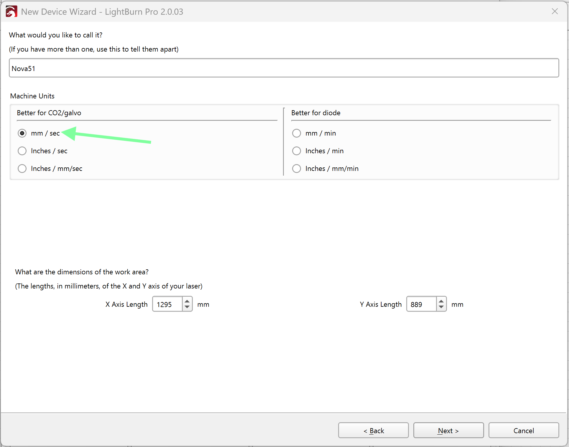 1. Open Lightburn and check your Units (mm vs in, seconds vs minutes)