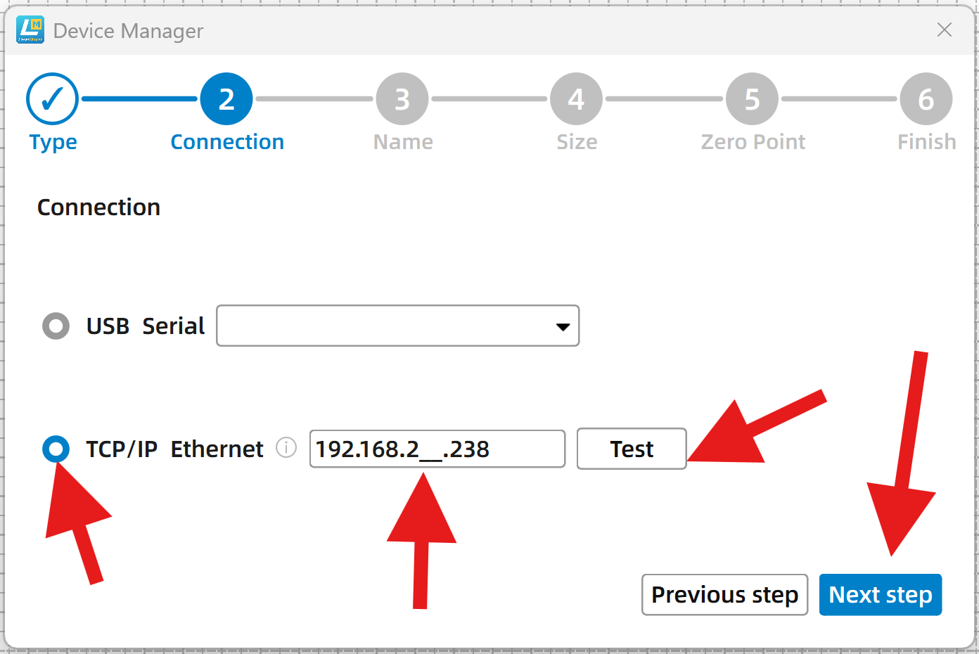 Ok so this will be a fun section as there are 3 connection methods, 2 operating systems and 3 possible control software's (If you include RDworks) to use so it starts to get complicated. Your exact scenario cannot be covered explicitly, so you will need to read through the guides and make decisions on what your IP should be and configure everything properly. Pay attention to the configuration of your IP as a single digit incorrect will cause communication to not work.