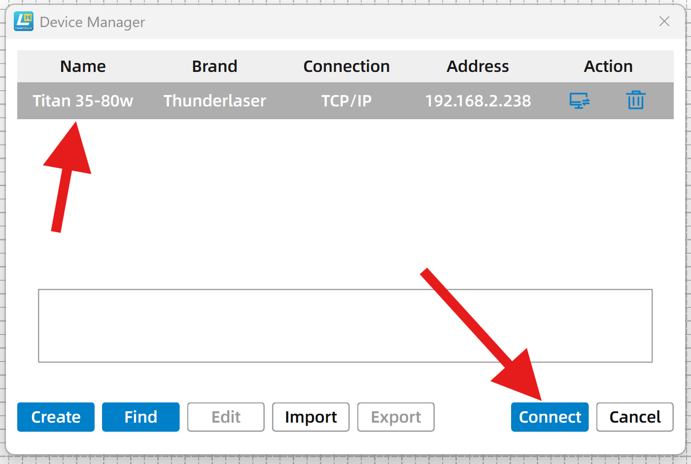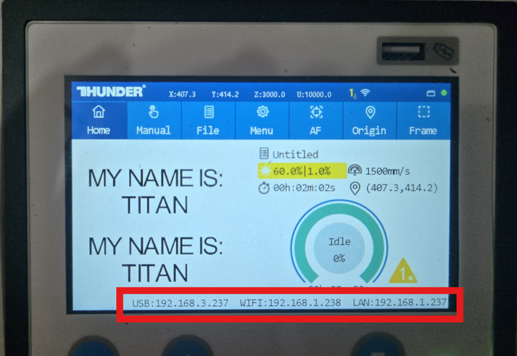 Due to the Titan series being equipped with a WiFi board and utilizing an integrated transmission architecture, its connection mechanism differs from other lasers. There is not a true "USB" serial method. Even though the connection cable is USB, it will act more like a USB to ethernet converter and is Windows Only.