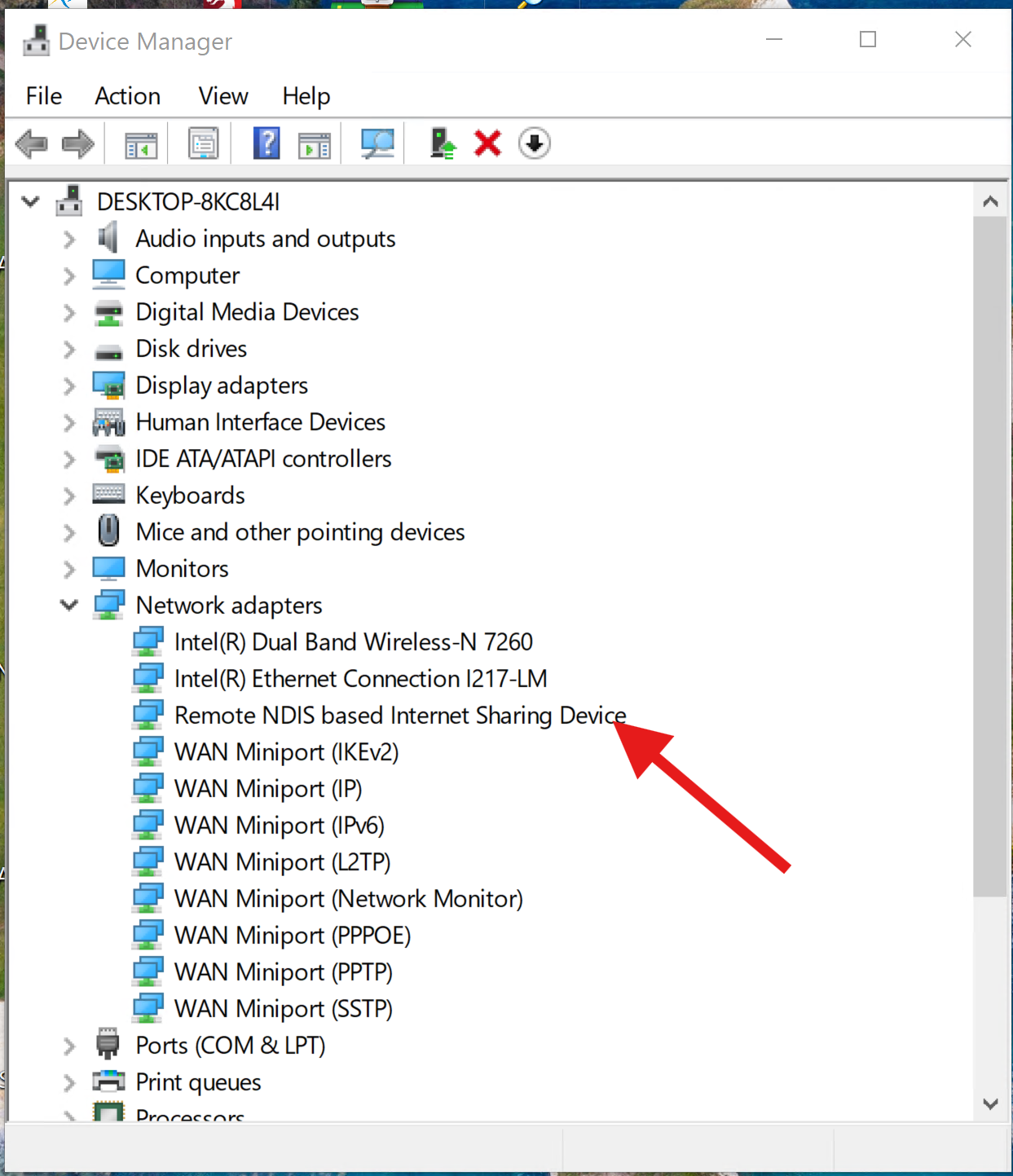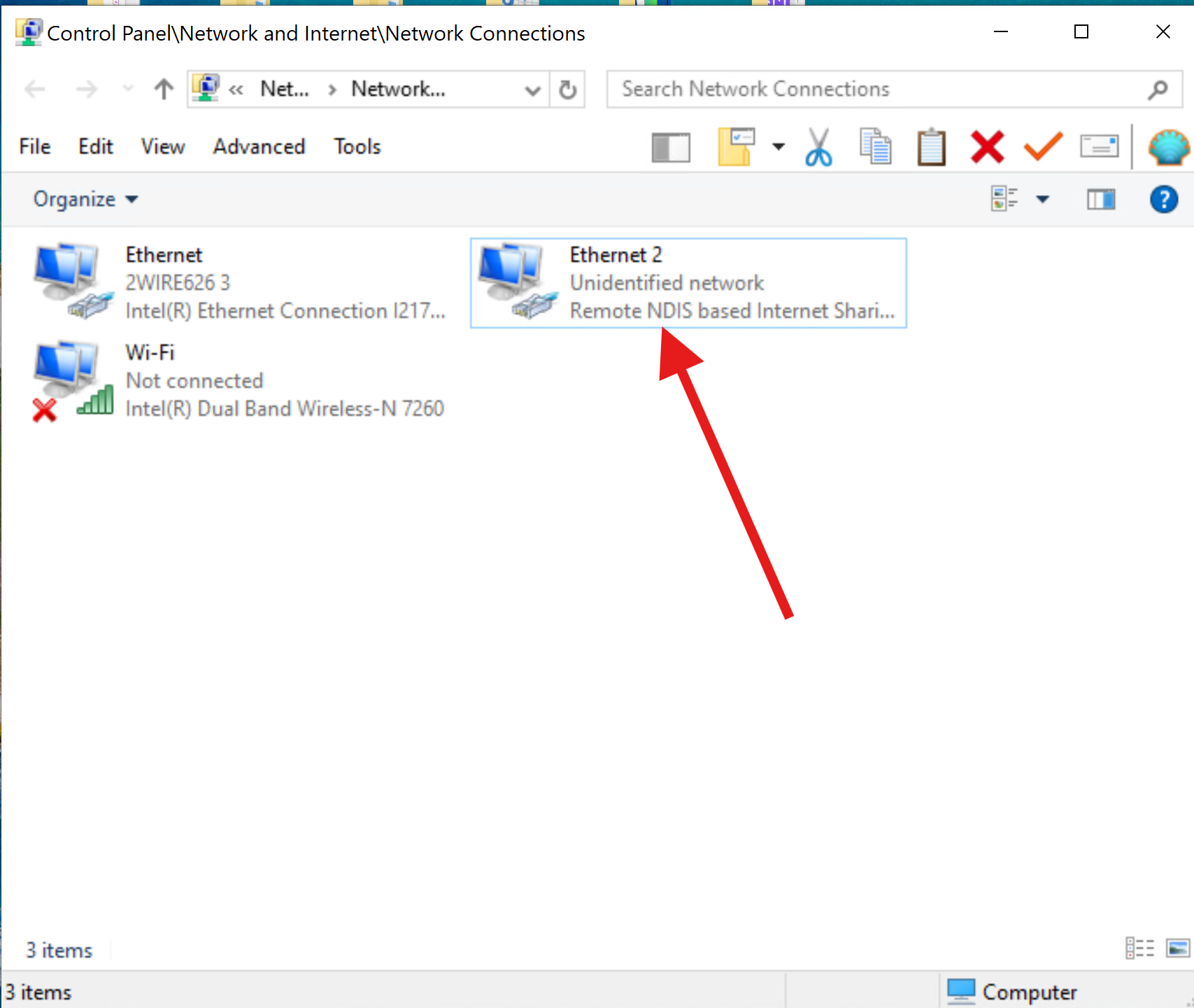 Open a "Network Connection" window and look for the new ethernet connection. Yes...it will be a network connection over the USB cable, akin to a USB to Ethernet converter. The new connection will also show up in the "Device Manager" as shown in the table.
