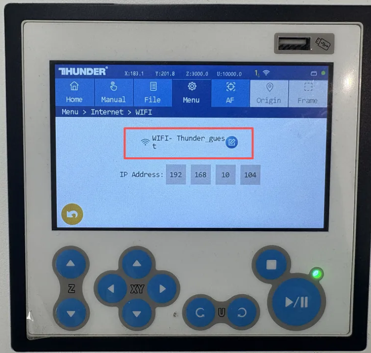 To connect via Wi-Fi, you need to ensure that both the laser machine and your computer are connected to the same Wi-Fi network. Also note that if you use a DHCP IP assignment for your laser, that the IP that is automatically assigned to the Laser can change, especially if your laser if off for extended periods of time. Advanced DHCP setup in your router can alleviate this but given the number of router brands and interfaces out there, you will need to refer to your brand' specific instructions and be able to navigate around in the DHCP space (Knowing terms, what to look for, how DHCP works etc).