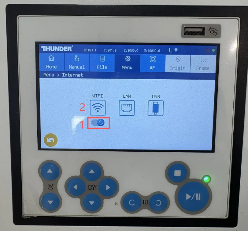Connect the laser machine to computer with the Ethernet cable that is provided with the machine or a longer one if needed.
