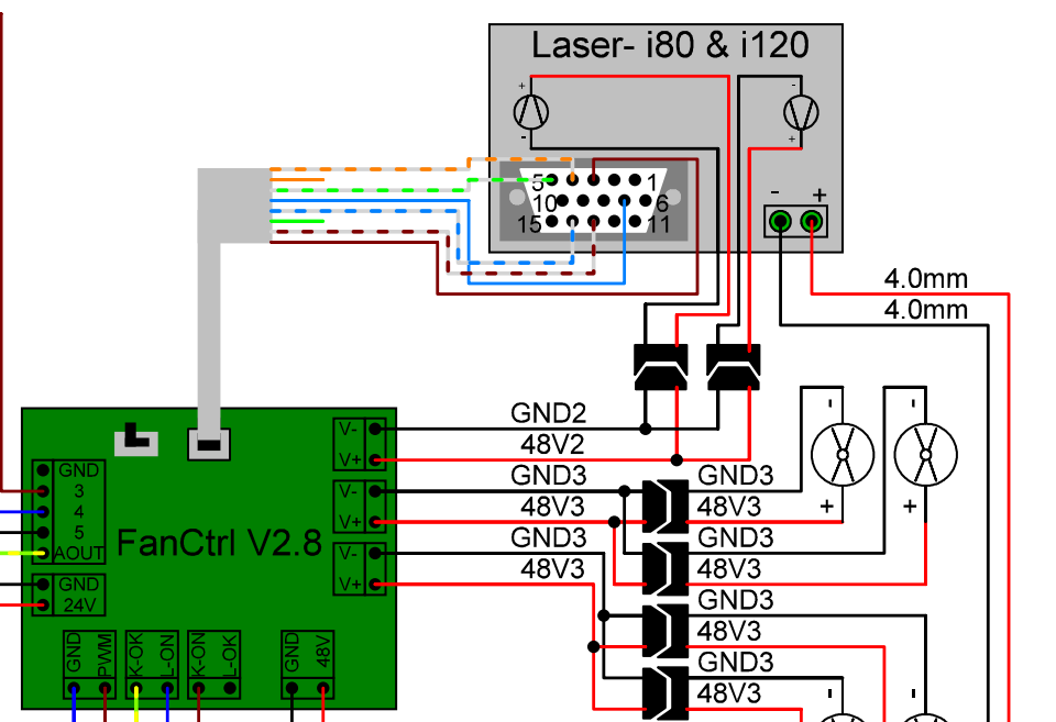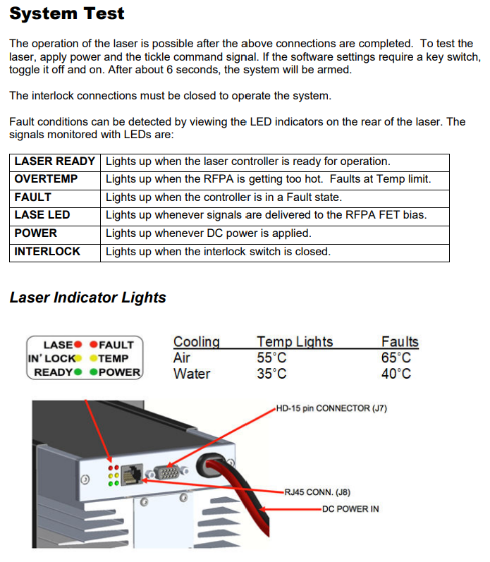 Titan series machines with v2.7 and newer fanboards and newer will have fault signals from the Tube that are used to display alarms on the control screen. The Laser Tube will also have LED status indicators