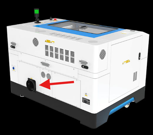 The Main power switch supplies power to the entire machine. It must be on in order for the Laser to operate
