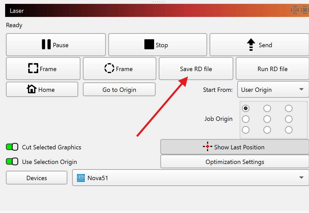 -The file on the USB stick must be exported by RDWorks/Lightburn/Lasermaker of type .rd. It is not the same as the project file. Please check if you saved the file correctly.